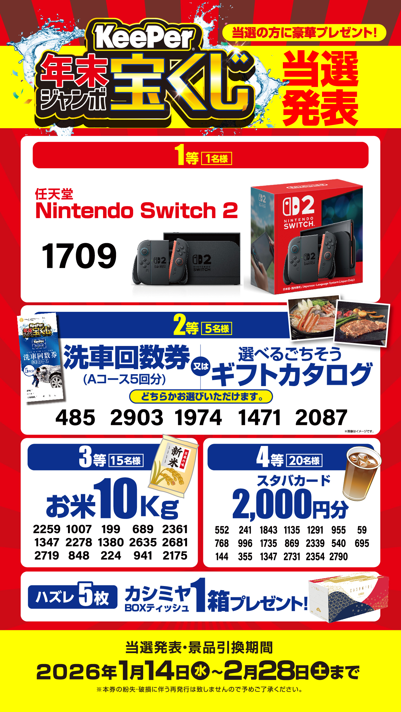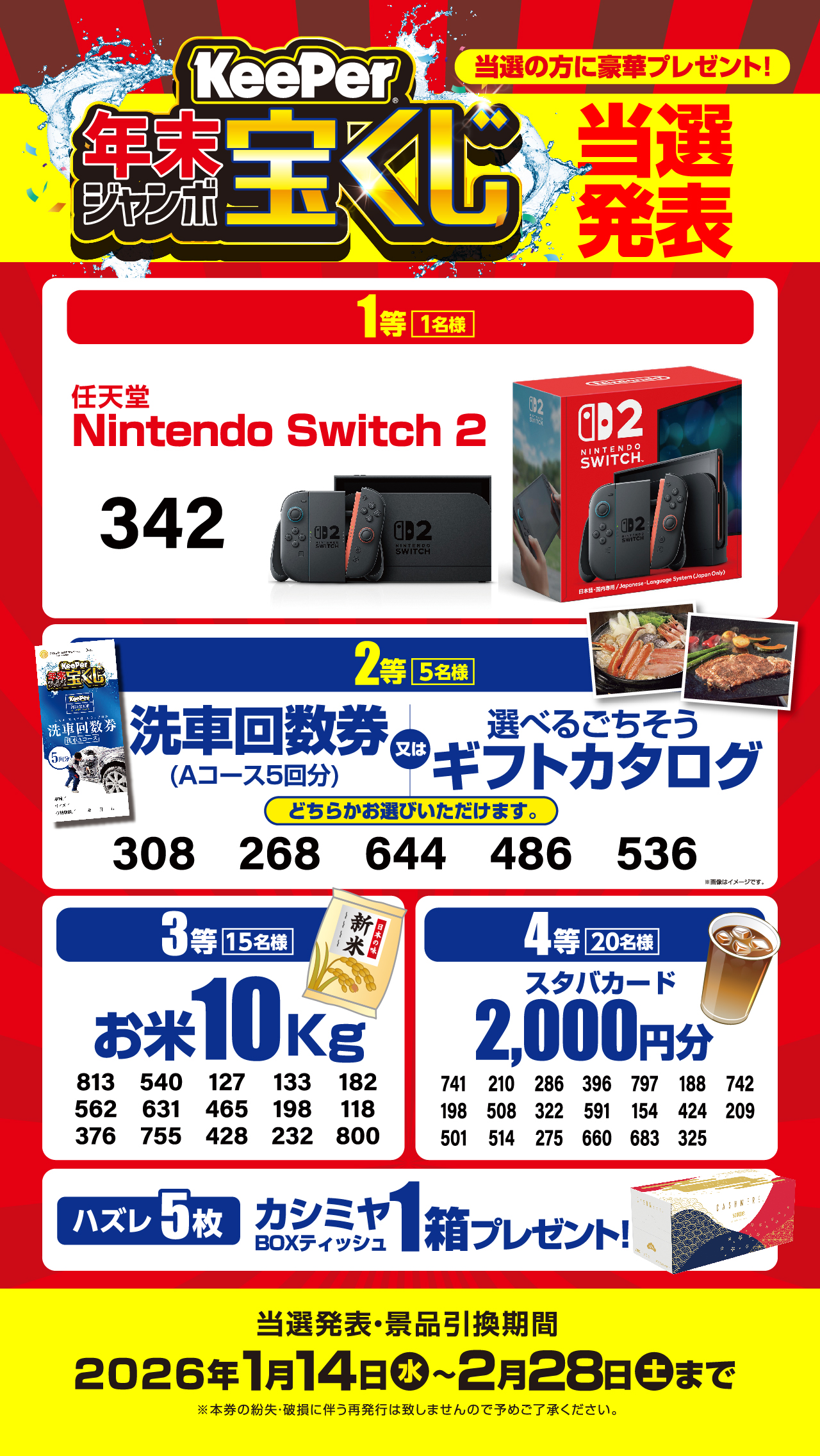 ◇キーパー鶴見今津店当選番号◇